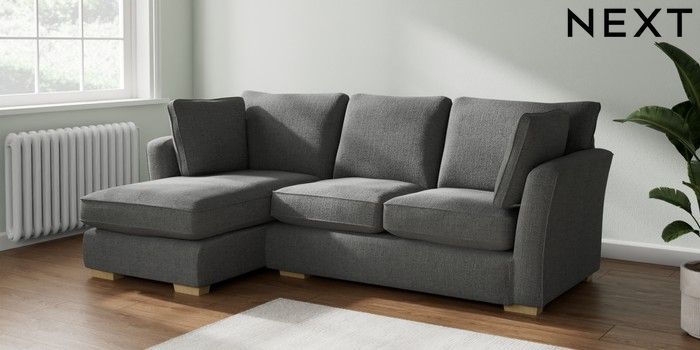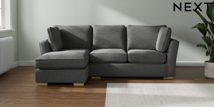 7.2.10 Heath Highback Medium Sofa Chaise - Left Hand Chunky Texture Dark Grey Block - Light | Made Click here to use our website with more accessibility support, for example screen readers