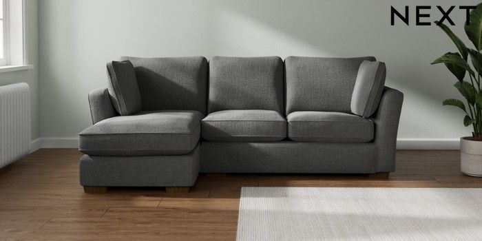7.2.10 Heath Highback Medium Sofa Chaise - Left Hand Chunky Texture Dark Grey Block - Mid | Made Click here to use our website with more accessibility support, for example screen readers