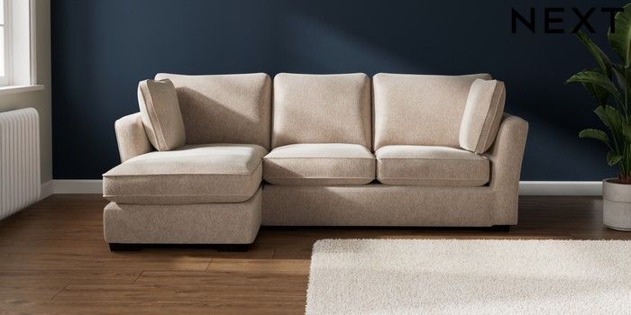 7.2.10 Heath Highback Medium Sofa Chaise - Left Hand Cotswold Chenille Light Natural Block - Dark | Made Click here to use our website with more accessibility support, for example screen readers