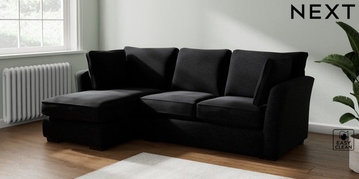 7.2.10 Heath Highback Medium Sofa Chaise - Left Hand Fine Chenille Easy Clean Black Block - Dark | Made Click here to use our website with more accessibility support, for example screen readers