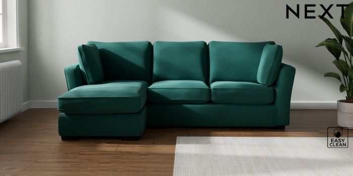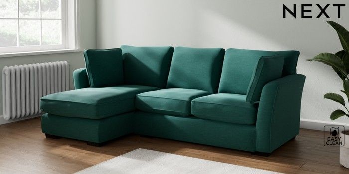 7.2.10 Heath Highback Medium Sofa Chaise - Left Hand Fine Chenille Easy Clean Dark Juniper Green Block - Dark | Made Click here to use our website with more accessibility support, for example screen readers