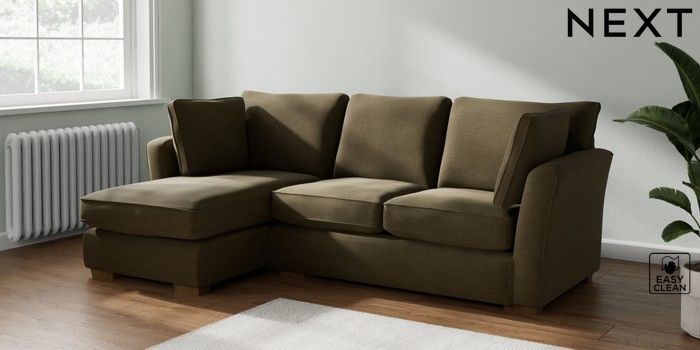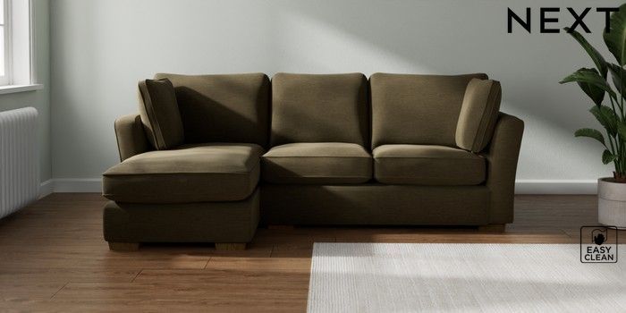 7.2.10 Heath Highback Medium Sofa Chaise - Left Hand Fine Chenille Easy Clean Dark Moss Green Block - Mid | Made Click here to use our website with more accessibility support, for example screen readers