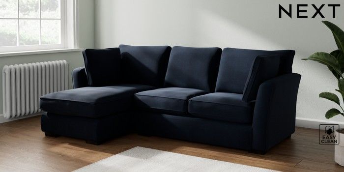 7.2.10 Heath Highback Medium Sofa Chaise - Left Hand Fine Chenille Easy Clean Dark Navy Blue Block - Dark | Made Click here to use our website with more accessibility support, for example screen readers