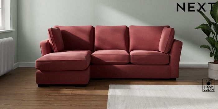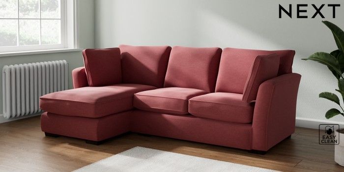 7.2.10 Heath Highback Medium Sofa Chaise - Left Hand Fine Chenille Easy Clean Mid Pink Block - Dark | Made Click here to use our website with more accessibility support, for example screen readers