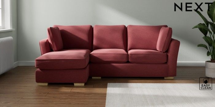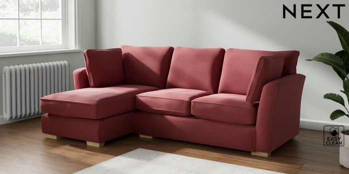 7.2.10 Heath Highback Medium Sofa Chaise - Left Hand Fine Chenille Easy Clean Mid Pink Block - Light | Made Click here to use our website with more accessibility support, for example screen readers