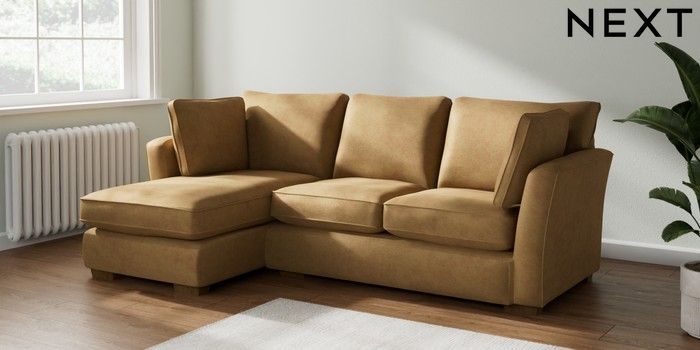 7.2.10 Heath Highback Medium Sofa Chaise - Left Hand Luxe Chenille Honey Yellow Block - Mid | Made Click here to use our website with more accessibility support, for example screen readers