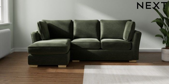 7.2.10 Heath Highback Medium Sofa Chaise - Left Hand Luxe Chenille Mid Green Block - Light | Made Click here to use our website with more accessibility support, for example screen readers