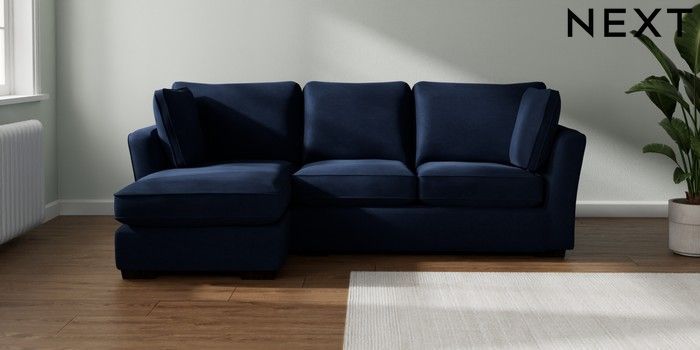 7.2.10 Heath Highback Medium Sofa Chaise - Left Hand Luxe Chenille Navy Blue Block - Dark | Made Click here to use our website with more accessibility support, for example screen readers