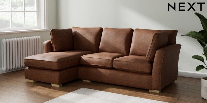 7.2.10 Heath Highback Medium Sofa Chaise - Left Hand Monza Faux Leather Easy Clean Chestnut Brown Block - Light | Made Click here to use our website with more accessibility support, for example screen readers