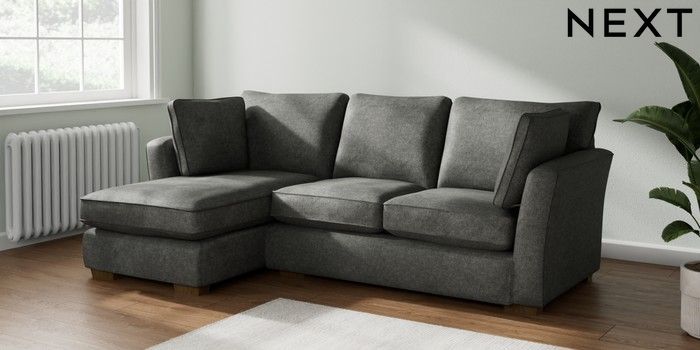 7.2.10 Heath Highback Medium Sofa Chaise - Left Hand Plush Chenille Dark Grey Block - Mid | Made Click here to use our website with more accessibility support, for example screen readers