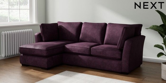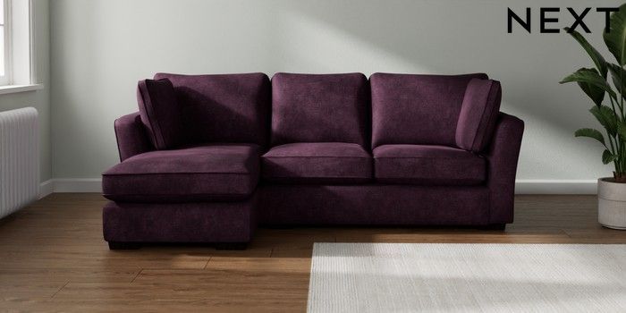 7.2.10 Heath Highback Medium Sofa Chaise - Left Hand Plush Chenille Dark Plum Purple Block - Dark | Made Click here to use our website with more accessibility support, for example screen readers