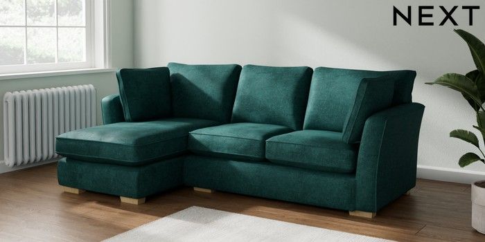 7.2.10 Heath Highback Medium Sofa Chaise - Left Hand Plush Chenille Dark Teal Green Block - Light | Made Click here to use our website with more accessibility support, for example screen readers