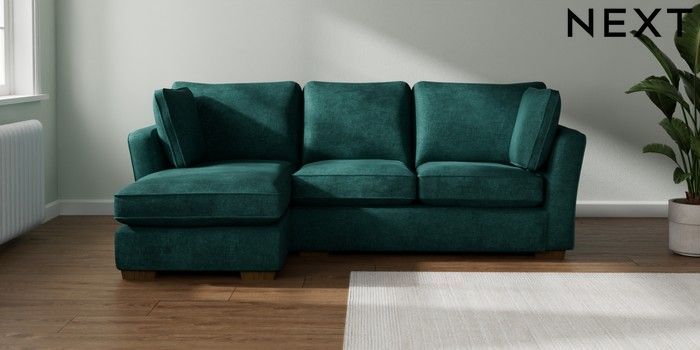 7.2.10 Heath Highback Medium Sofa Chaise - Left Hand Plush Chenille Dark Teal Green Block - Mid | Made Click here to use our website with more accessibility support, for example screen readers