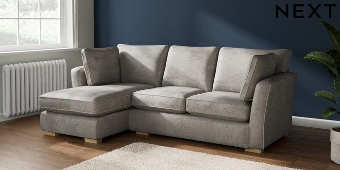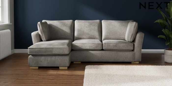7.2.10 Heath Highback Medium Sofa Chaise - Left Hand Plush Chenille Light Grey Block - Light | Made Click here to use our website with more accessibility support, for example screen readers