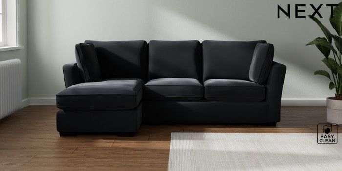 7.2.10 Heath Highback Medium Sofa Chaise - Left Hand Plush Velvet Easy Clean Charcoal Grey Block - Dark | Made Click here to use our website with more accessibility support, for example screen readers