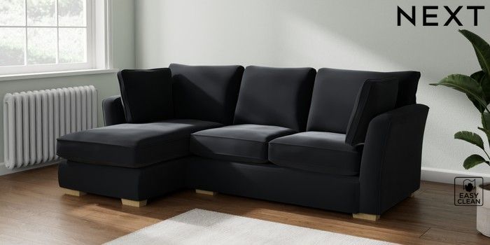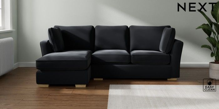 7.2.10 Heath Highback Medium Sofa Chaise - Left Hand Plush Velvet Easy Clean Charcoal Grey Block - Light | Made Click here to use our website with more accessibility support, for example screen readers