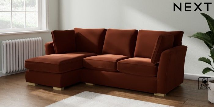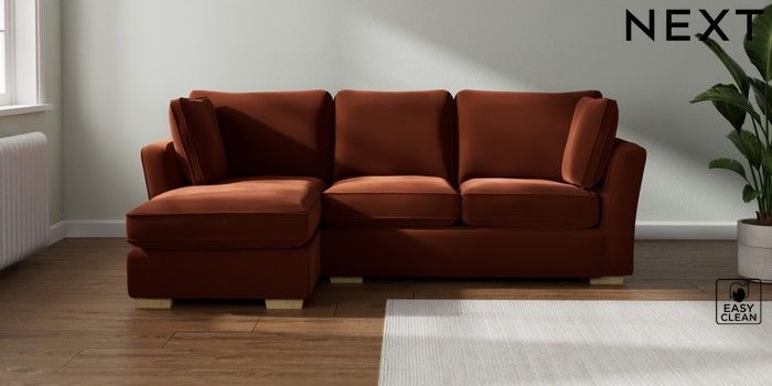 7.2.10 Heath Highback Medium Sofa Chaise - Left Hand Plush Velvet Easy Clean Ginger Orange Block - Light | Made Click here to use our website with more accessibility support, for example screen readers