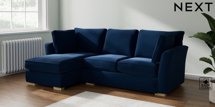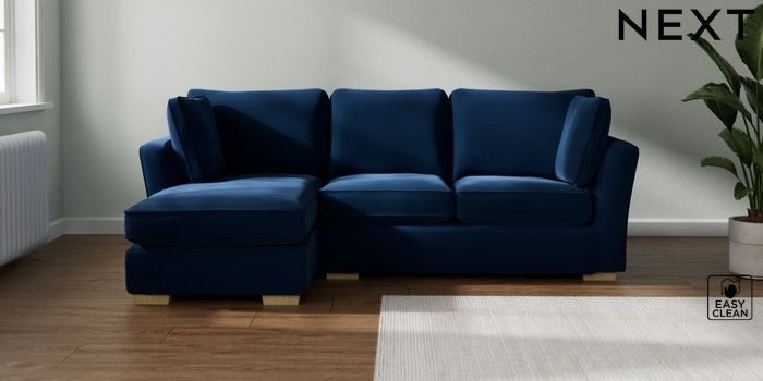 7.2.10 Heath Highback Medium Sofa Chaise - Left Hand Plush Velvet Easy Clean Navy Blue Block - Light | Made Click here to use our website with more accessibility support, for example screen readers