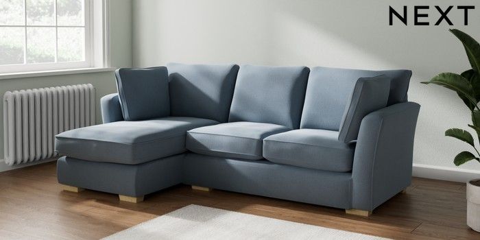 7.2.10 Heath Highback Medium Sofa Chaise - Left Hand Relaxed Linen Look Mid Blue Block - Light | Made Click here to use our website with more accessibility support, for example screen readers