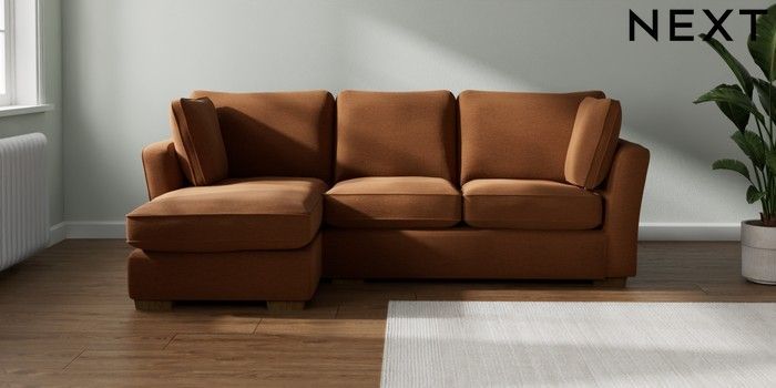 7.2.10 Heath Highback Medium Sofa Chaise - Left Hand Ripple Chenille Mid Rust Brown Block - Mid | Made Click here to use our website with more accessibility support, for example screen readers
