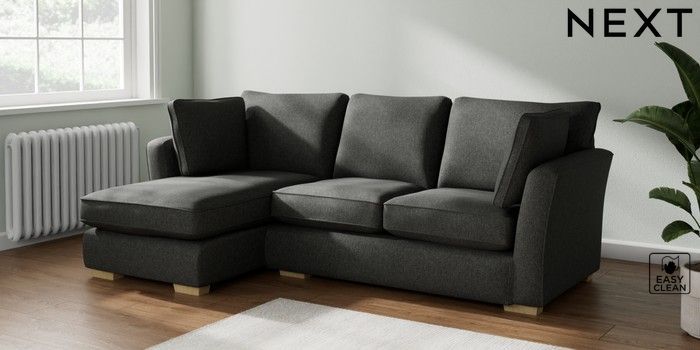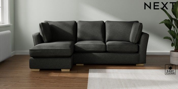 7.2.10 Heath Highback Medium Sofa Chaise - Left Hand Tweedy Blend Easy Clean Charcoal Grey Block - Light | Made Click here to use our website with more accessibility support, for example screen readers