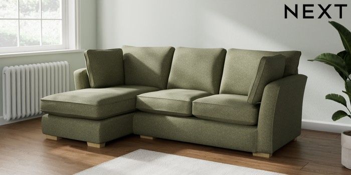7.2.10 Heath Highback Medium Sofa Chaise - Left Hand Tweedy Chenille Mid Moss Green Block - Light | Made Click here to use our website with more accessibility support, for example screen readers