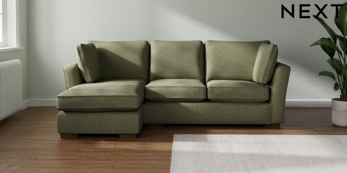 7.2.10 Heath Highback Medium Sofa Chaise - Left Hand Tweedy Chenille Mid Moss Green Block - Mid | Made Click here to use our website with more accessibility support, for example screen readers