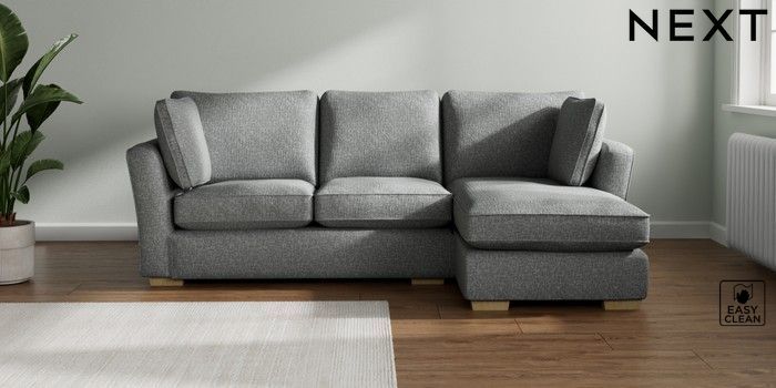 7.2.10 Heath Highback Medium Sofa Chaise - Right Hand Chunky Boucle Easy Clean Mid Grey Block - Light | Made Click here to use our website with more accessibility support, for example screen readers