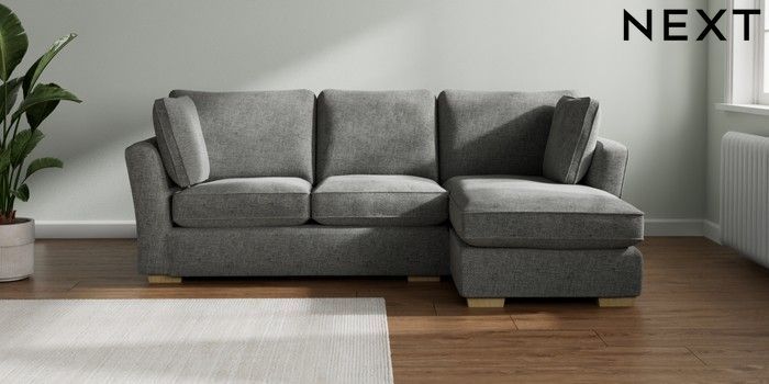7.2.10 Heath Highback Medium Sofa Chaise - Right Hand Chunky Chenille Dark Grey Block - Light | Made Click here to use our website with more accessibility support, for example screen readers