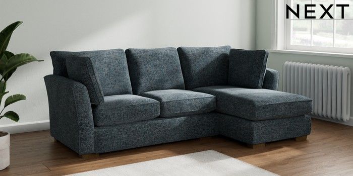 7.2.10 Heath Highback Medium Sofa Chaise - Right Hand Chunky Chenille Dark Navy Blue Block - Mid | Made Click here to use our website with more accessibility support, for example screen readers