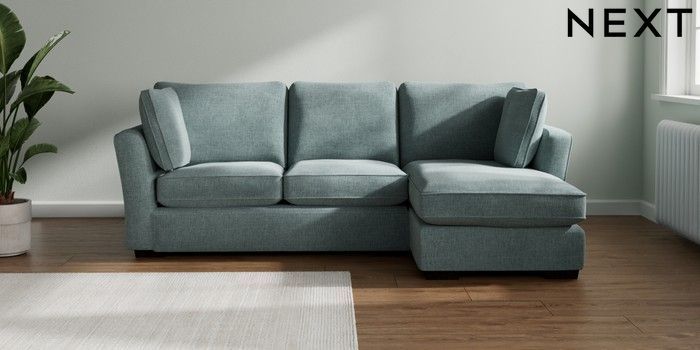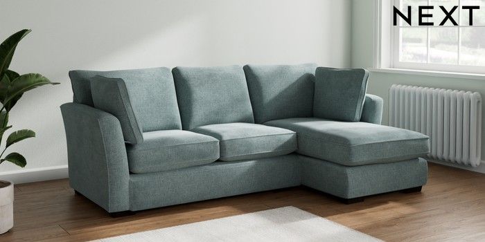 7.2.10 Heath Highback Medium Sofa Chaise - Right Hand Chunky Chenille Light Teal Green Block - Dark | Made Click here to use our website with more accessibility support, for example screen readers