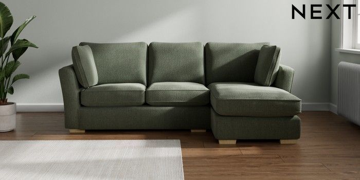 7.2.10 Heath Highback Medium Sofa Chaise - Right Hand Chunky Texture Mid Forest Green Block - Light | Made Click here to use our website with more accessibility support, for example screen readers