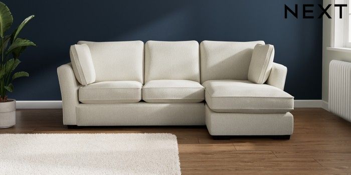 7.2.10 Heath Highback Medium Sofa Chaise - Right Hand Chunky Texture Oyster Block - Dark | Made Click here to use our website with more accessibility support, for example screen readers