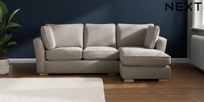 7.2.10 Heath Highback Medium Sofa Chaise - Right Hand Chunky Weave Dove Grey Block - Light | Made Click here to use our website with more accessibility support, for example screen readers