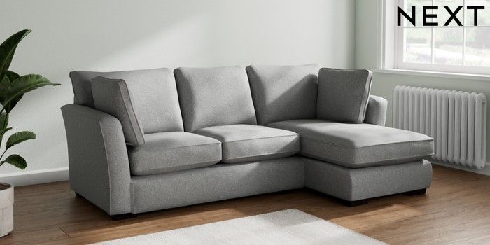 7.2.10 Heath Highback Medium Sofa Chaise - Right Hand Chunky Weave Mid Grey Block - Dark | Made Click here to use our website with more accessibility support, for example screen readers