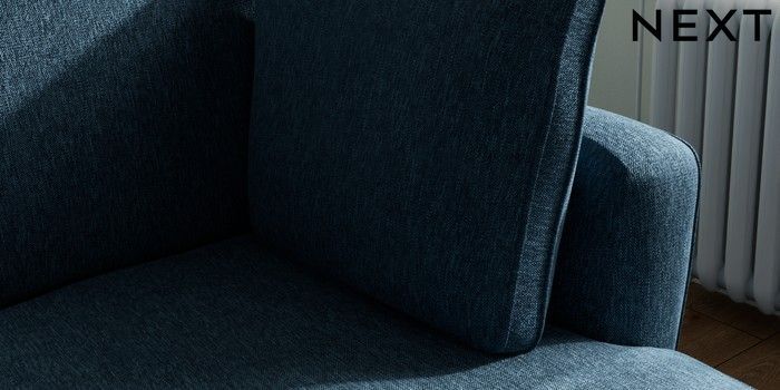 7.2.10 Heath Highback Medium Sofa Chaise - Right Hand Cotswold Chenille Dark Blue Block - Light | Made Click here to use our website with more accessibility support, for example screen readers