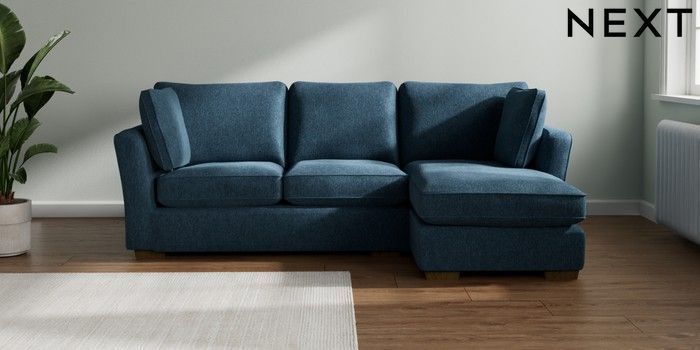 7.2.10 Heath Highback Medium Sofa Chaise - Right Hand Cotswold Chenille Dark Blue Block - Mid | Made Click here to use our website with more accessibility support, for example screen readers