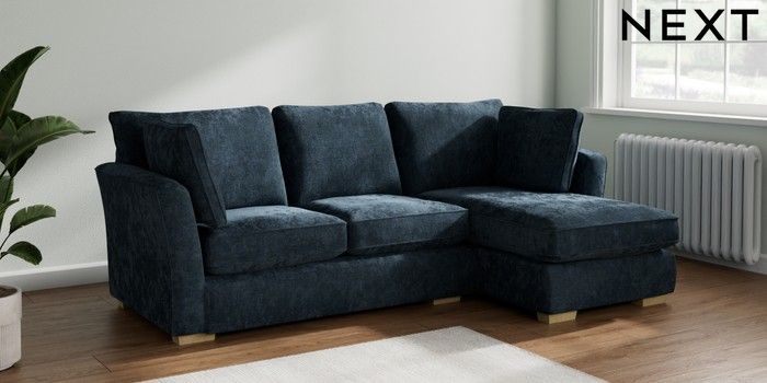 7.2.10 Heath Highback Medium Sofa Chaise - Right Hand Distressed Velour Midnight Blue Block - Light | Made Click here to use our website with more accessibility support, for example screen readers