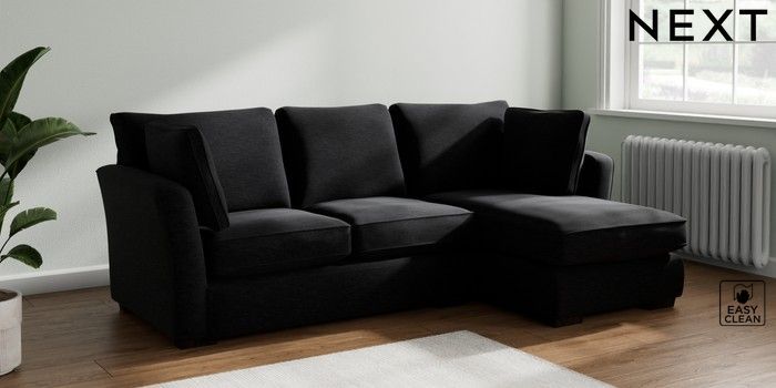 7.2.10 Heath Highback Medium Sofa Chaise - Right Hand Fine Chenille Easy Clean Black Block - Dark | Made Click here to use our website with more accessibility support, for example screen readers