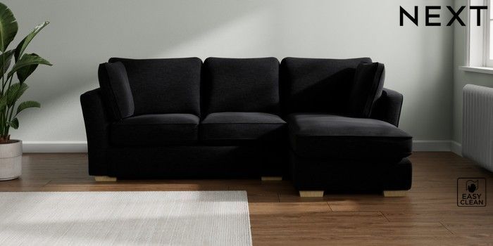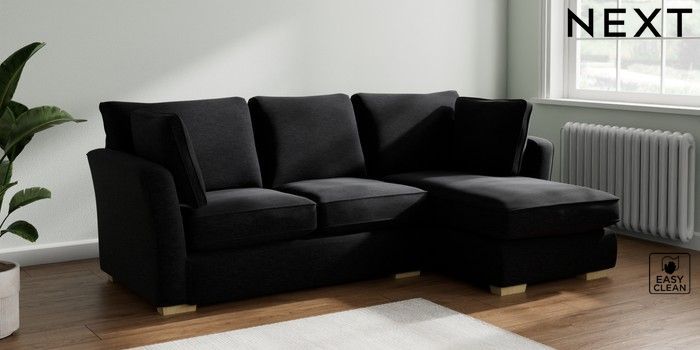 7.2.10 Heath Highback Medium Sofa Chaise - Right Hand Fine Chenille Easy Clean Black Block - Light | Made Click here to use our website with more accessibility support, for example screen readers