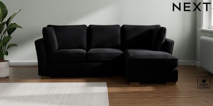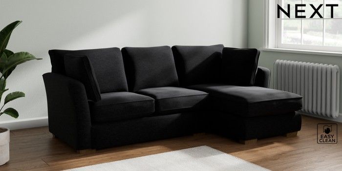 7.2.10 Heath Highback Medium Sofa Chaise - Right Hand Fine Chenille Easy Clean Black Block - Mid | Made Click here to use our website with more accessibility support, for example screen readers