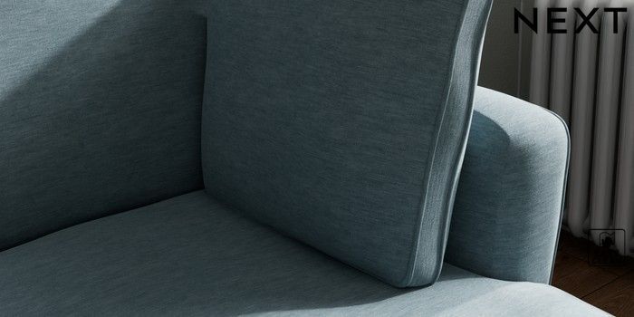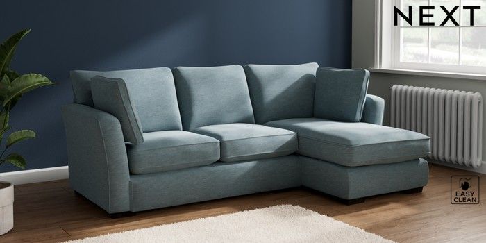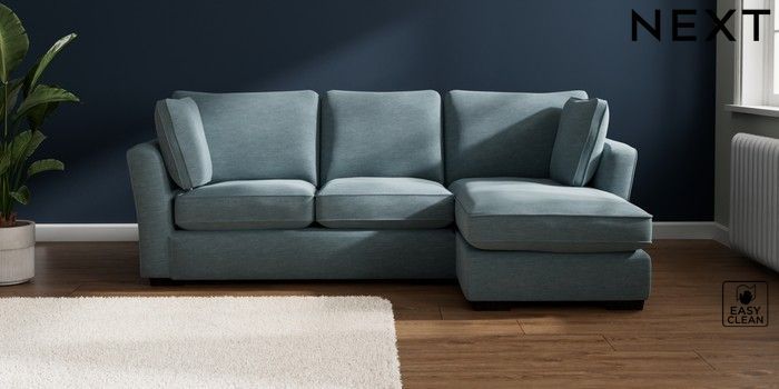 7.2.10 Heath Highback Medium Sofa Chaise - Right Hand Fine Chenille Easy Clean Mid Blue Block - Dark | Made Click here to use our website with more accessibility support, for example screen readers