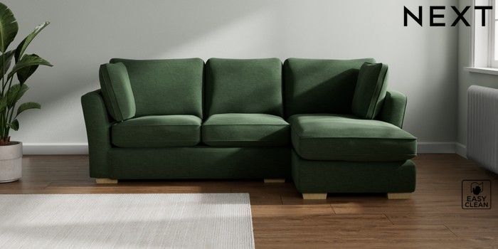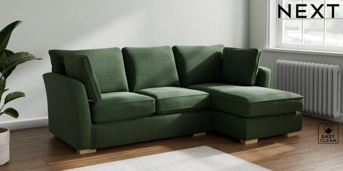 7.2.10 Heath Highback Medium Sofa Chaise - Right Hand Fine Chenille Easy Clean Mid Khaki Green Block - Light | Made Click here to use our website with more accessibility support, for example screen readers