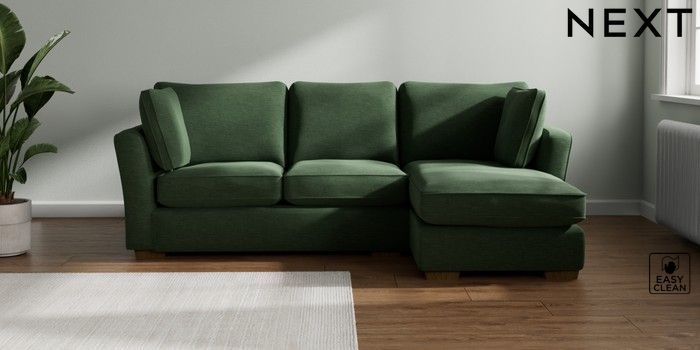 7.2.10 Heath Highback Medium Sofa Chaise - Right Hand Fine Chenille Easy Clean Mid Khaki Green Block - Mid | Made Click here to use our website with more accessibility support, for example screen readers