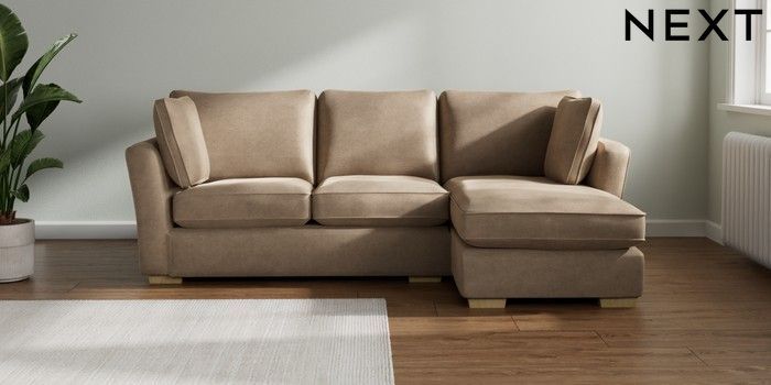 7.2.10 Heath Highback Medium Sofa Chaise - Right Hand Luxe Chenille Mid Camel Beige Block - Light | Made Click here to use our website with more accessibility support, for example screen readers