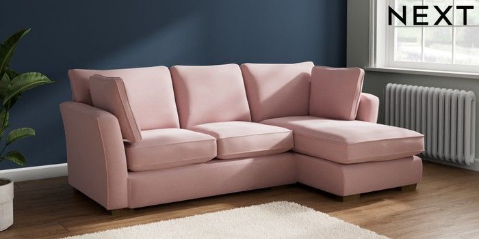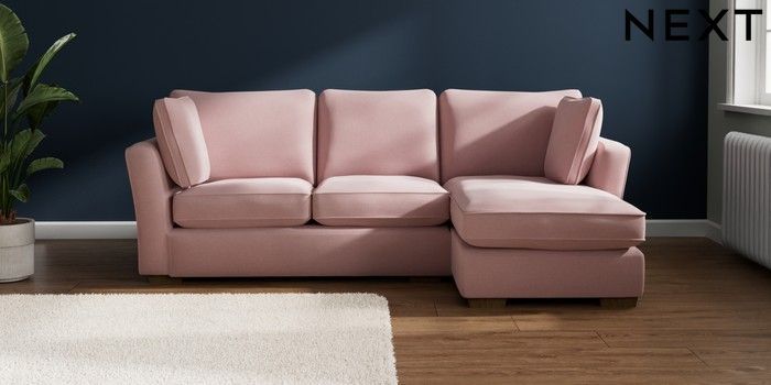 7.2.10 Heath Highback Medium Sofa Chaise - Right Hand Natural Mix Light Rose Pink Block - Mid | Made Click here to use our website with more accessibility support, for example screen readers