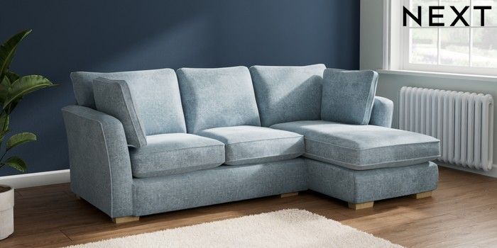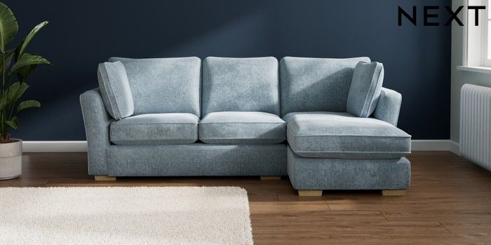 7.2.10 Heath Highback Medium Sofa Chaise - Right Hand Plush Chenille Light Blue Block - Light | Made Click here to use our website with more accessibility support, for example screen readers