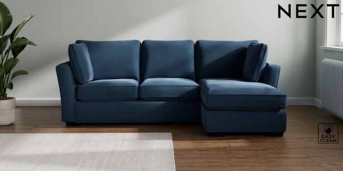 7.2.10 Heath Highback Medium Sofa Chaise - Right Hand Plush Velvet Easy Clean Airforce Blue Block - Dark | Made Click here to use our website with more accessibility support, for example screen readers