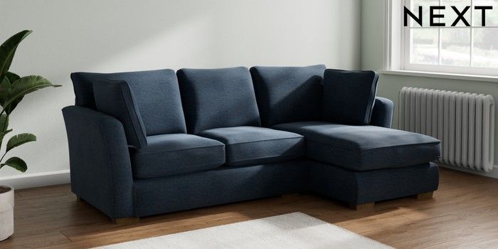7.2.10 Heath Highback Medium Sofa Chaise - Right Hand Ripple Chenille Dark Blue Block - Mid | Made Click here to use our website with more accessibility support, for example screen readers