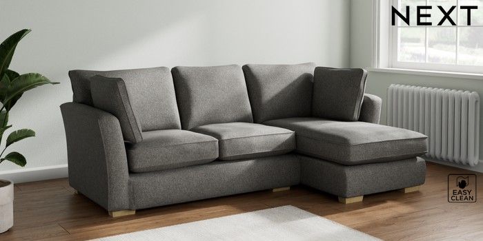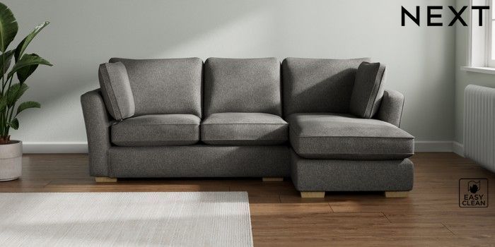 7.2.10 Heath Highback Medium Sofa Chaise - Right Hand Tweedy Blend Easy Clean Dark Grey Block - Light | Made Click here to use our website with more accessibility support, for example screen readers